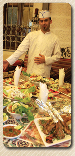 במרכז תשומת הלב נמצאת הסעודה של שאליזר, עם אוכל ערבי אותנטי כיד המלך. התפריט של המסעדה כולל שפע של סלטים טריים, חומוס משגע שמכינים במסעדה ממתכון סודי שעובר מדור לדור מזה 100 שנה וכמובן מגוון שיפודים עסיסיים לבחירה. שירות לבבי משלים חוויה בלתי נשכחת בבית המלוכה הפרטי שלכם, לארוחה או לאירוע.
